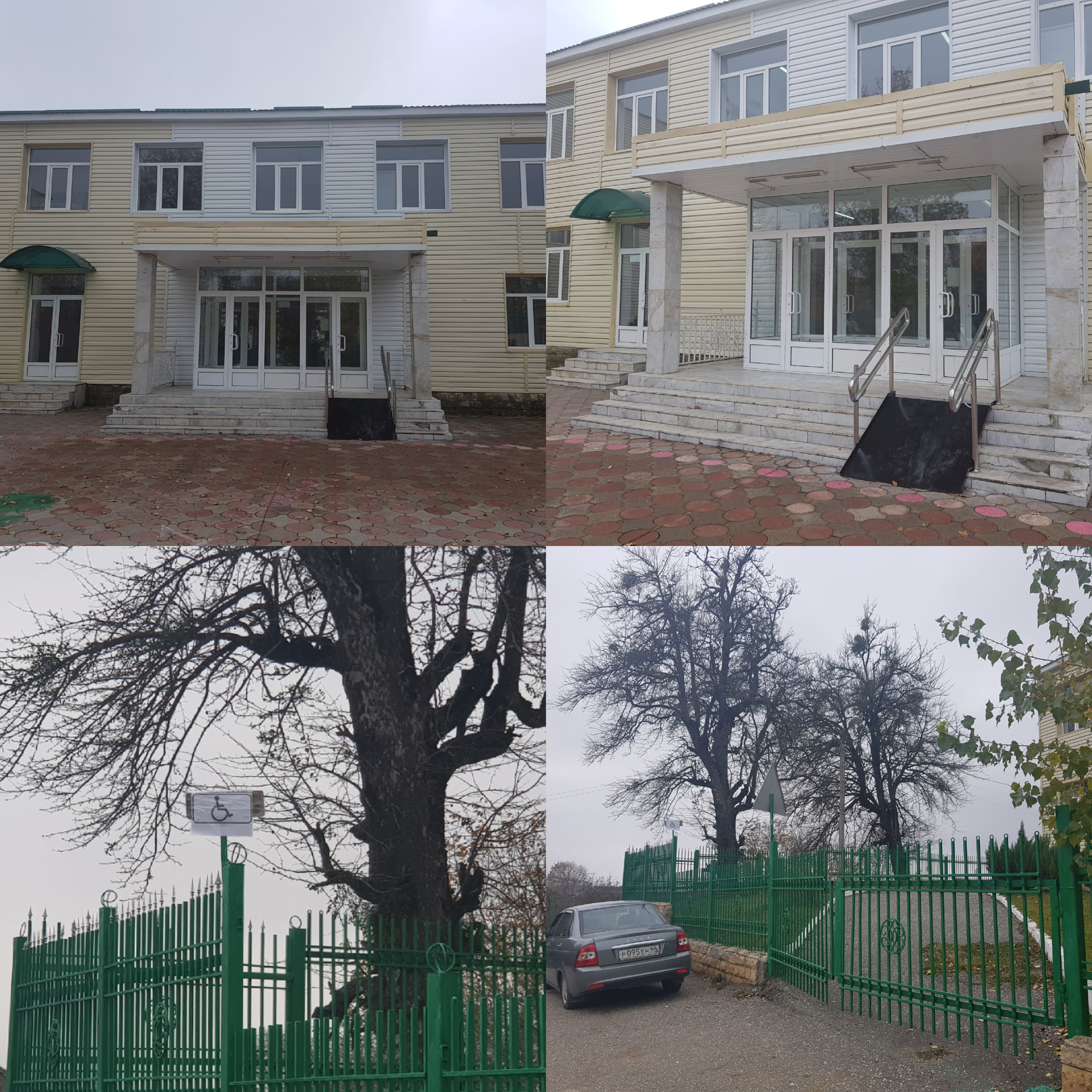 Имеется станционарный пандус при входе, также выделено место для парковки личных автомобилей людей с ограниченными способностями. |
