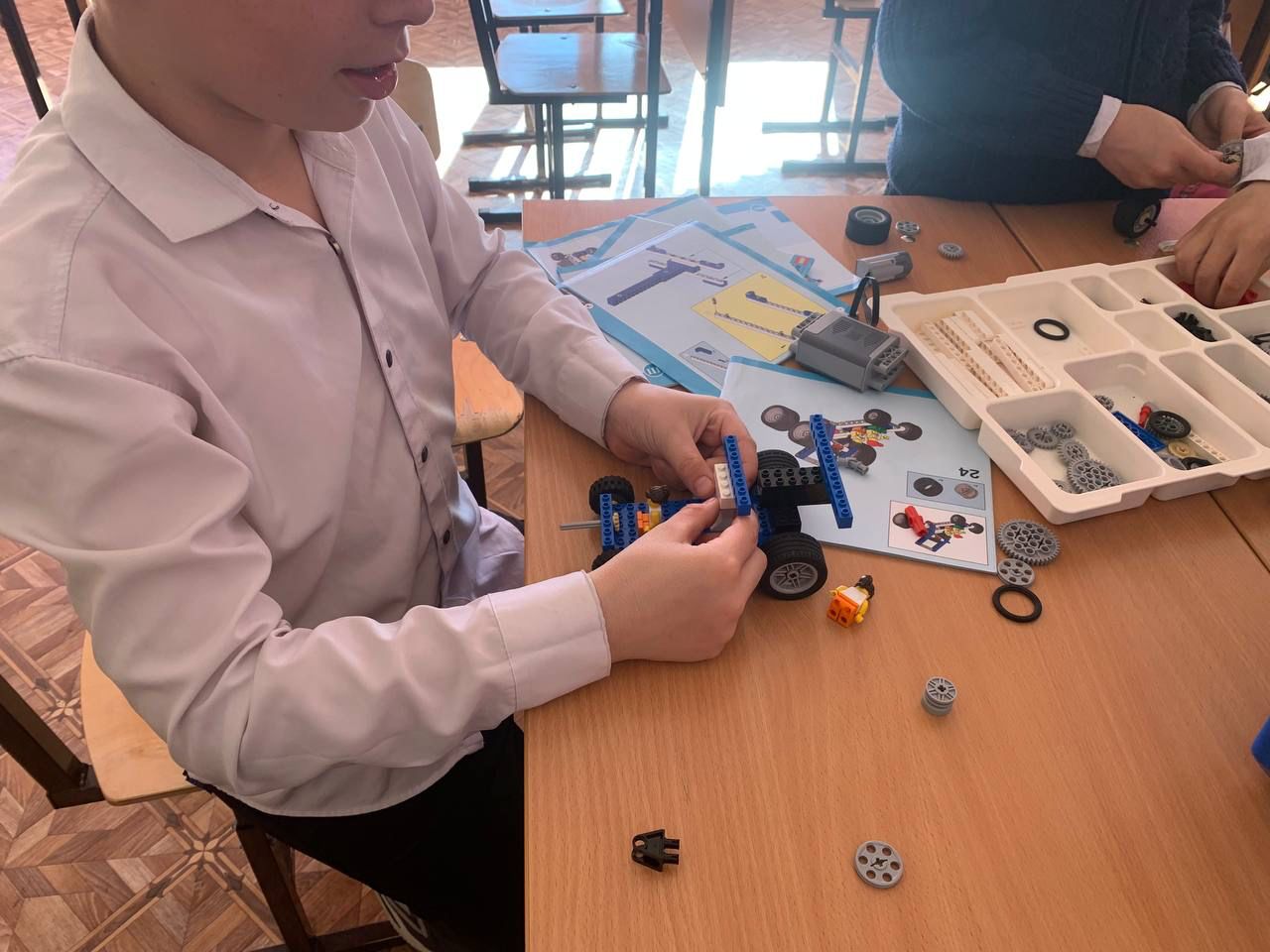 В 6 классе прошел урок технологий, дети учились работе в команде и постройке кострукций.