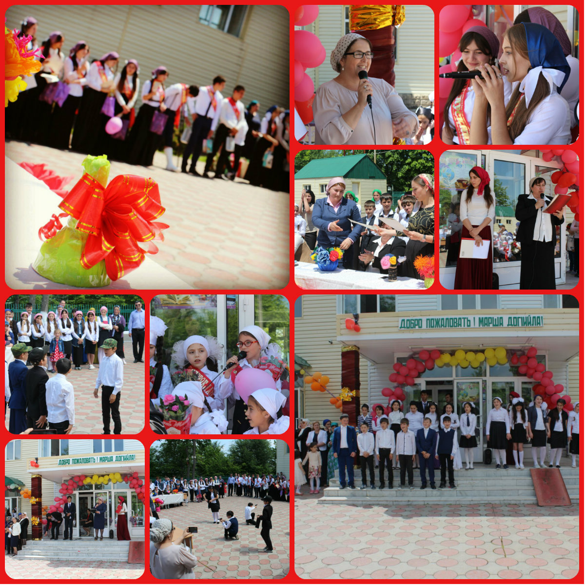 Ученики школы устроили настоящий праздник для всех присутствующих. Выпускники 9 и 11 класса читали стихи, пели песни об учителях и школе. Ребят поздравляли родители и учителя. Но главное слово, конечно же, было за ребятами выпускного 11 класса. Нарядные выпускники, прощаясь с детством, поблагодарили своих любимых учителей.