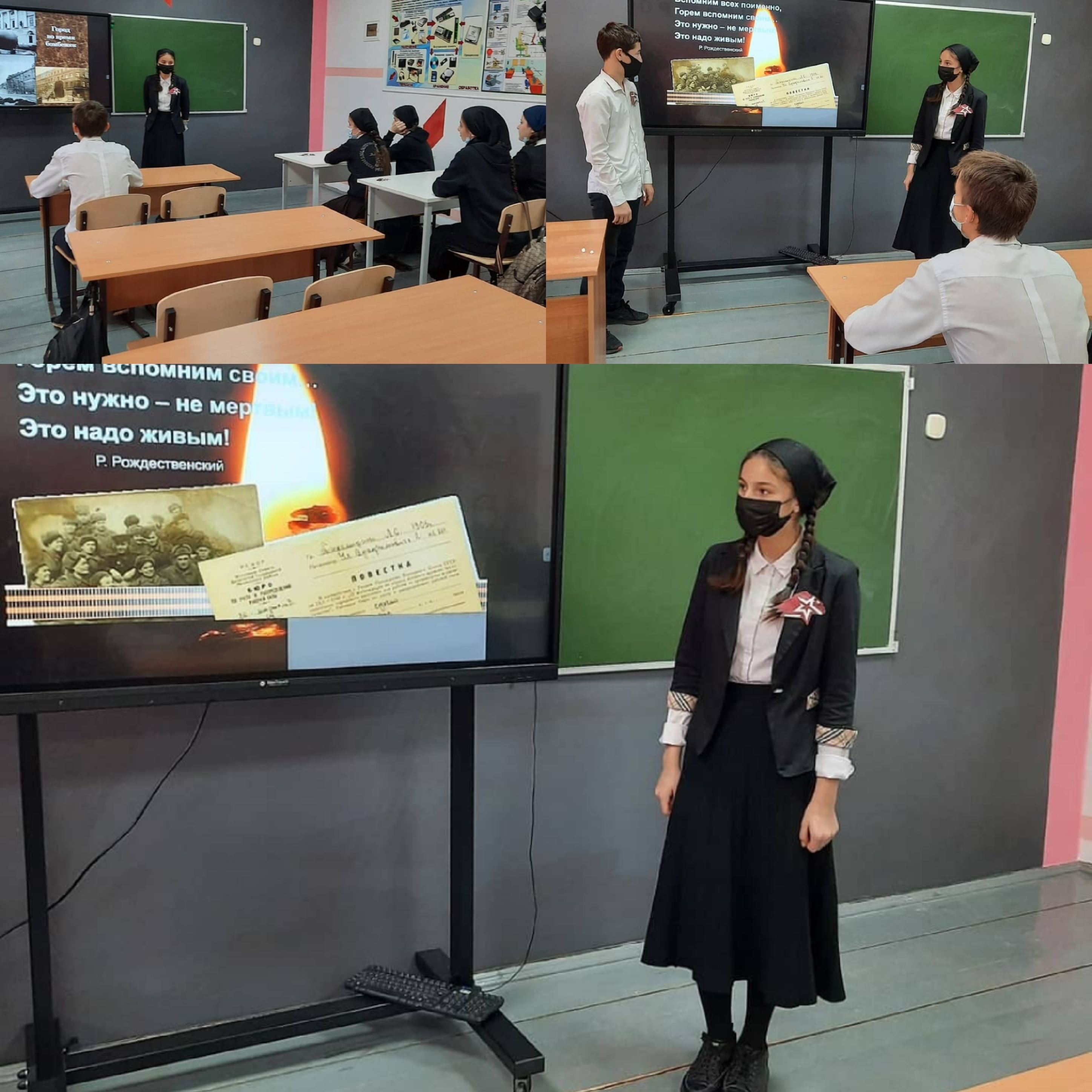 Члены отряда юнармейцев "Новое поколение" МБОУ "СОШ с.Хажи-Эвла им. Товзаева Р.Э" провели Уроки Мужества, один из которых был посвящён Дню снятия блокады Ленинграда.