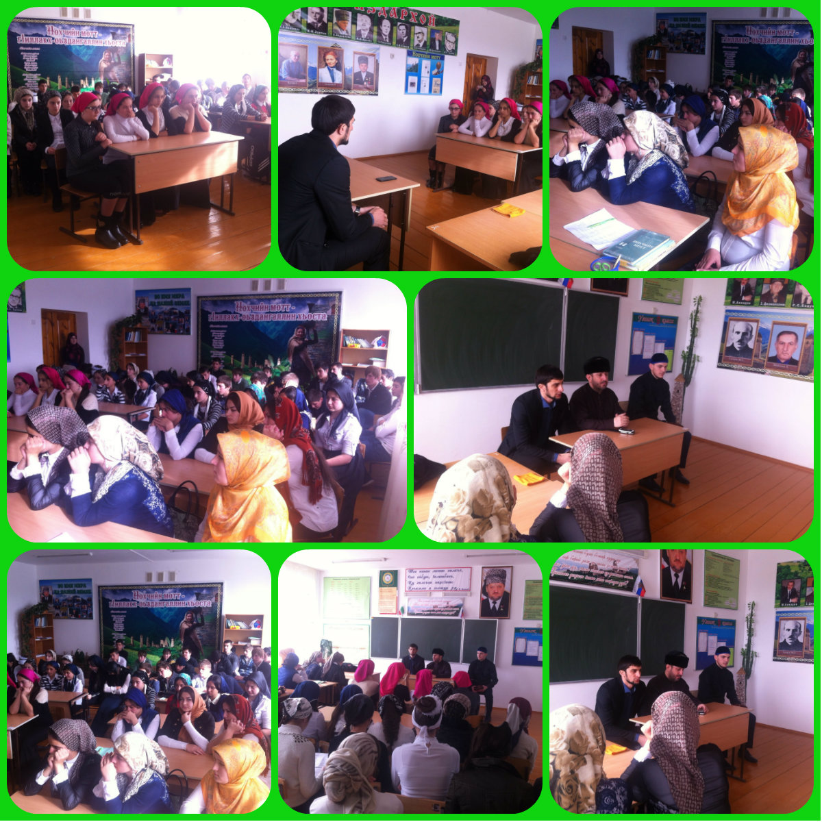 16.11.2015Сегодня муфтий Веденского района Джафаров А.,педагог-организатор по ДНВ Доскаев И.Т. провели встречу с обучающимися, в ходе которой муфтий рассказал о важности соблюдения пяти столпов Ислама, обязательных для правоверного мусульманина .Так же в своей проповеди он уделил внимание ложному толкованию Корана ваххабитами террористической организации ИГИЛ, которая беспощадно убивает мусульман, не щадя ни стариков, ни женщин, ни даже детей.
